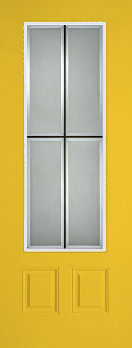 Bright Fremont yellow makes a cheerful statement on this 8-foot fiberglass door. The Eastmont 3/4 lite adds architectural interest, and the advanced insulation ensures steady indoor temperatures regardless of weather.