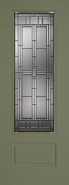 In an earthy Artichoke hue, this 8-foot door spotlights an Artisan 3/4 lite for a bright, welcoming foyer. Fiberglass stands up to warping and insects, and the insulated core ensures efficient climate control indoors.