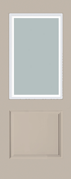 1-Panel Smooth Fiberglass Exterior Door with Perimeter Half Lite – Sand