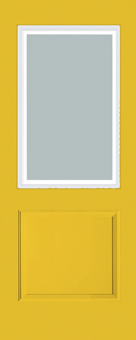 Brighten your porch with this Fremont yellow, 1-panel fiberglass door. The Perimeter half lite invites sunshine indoors, while the fiberglass core and foam insulation bolster your home’s energy efficiency.
