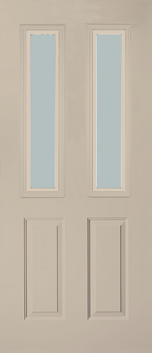 2-Panel Smooth Fiberglass Exterior Door with Perimeter Twin Lites – Sand