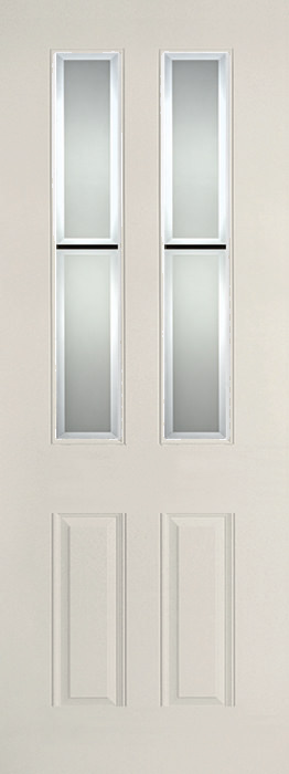 8-Foot Smooth Fiberglass Exterior Door with Eastmont Twin Lites – Ivory
